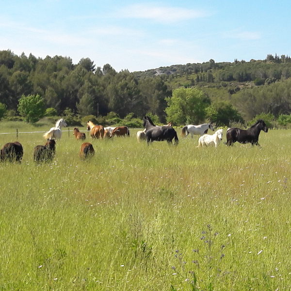 Nous proposons quelques places en pension dans de grands prés avec du foin à volonté et plein de copains.